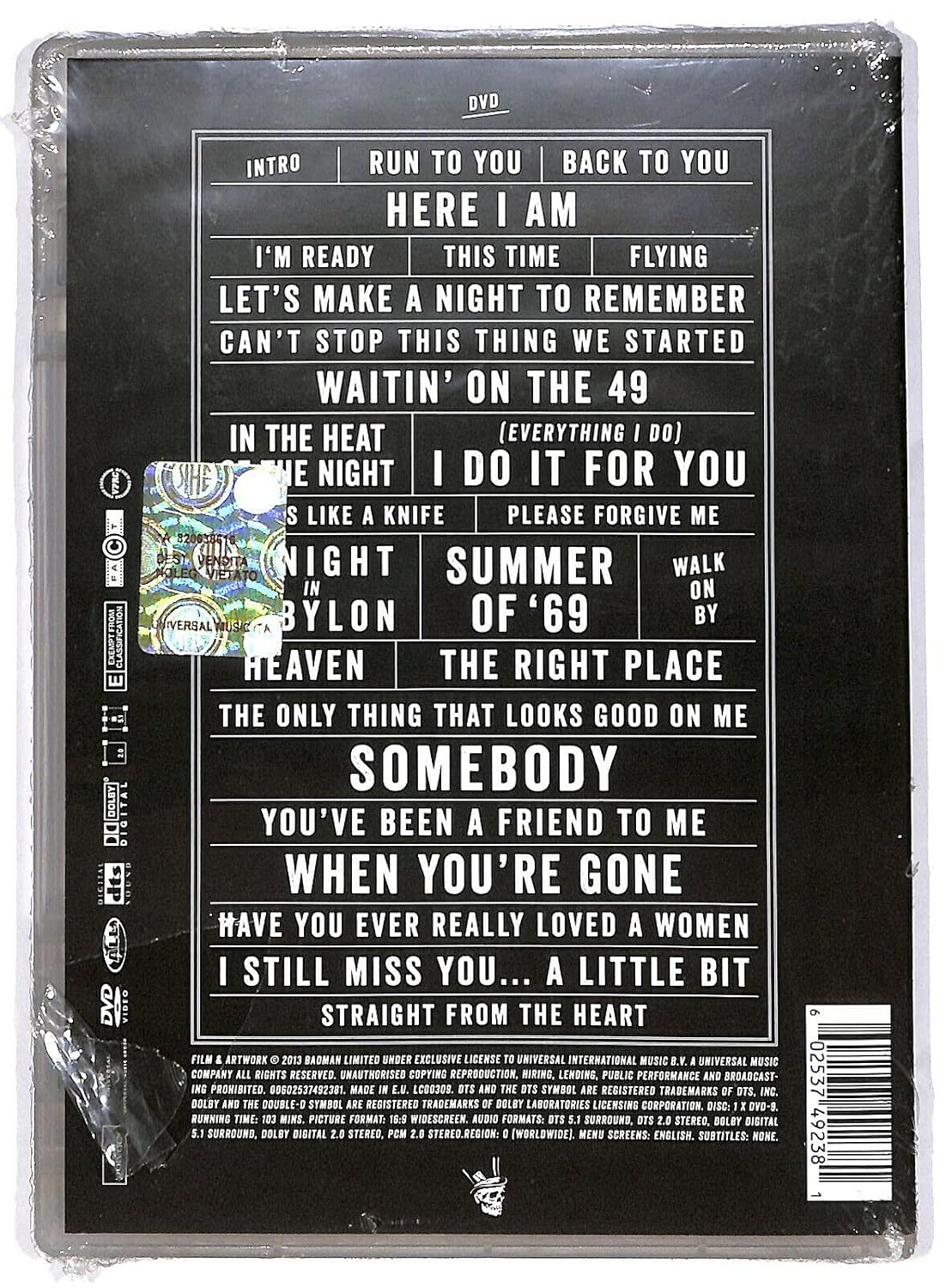 ADAMS,BRYAN - BARE BONS TOUR: LIVE AT SIDNEY OPERA (DVD)