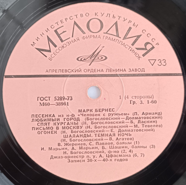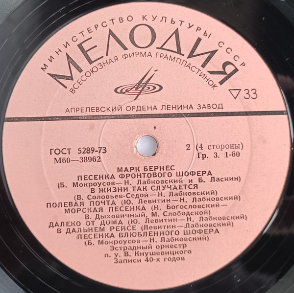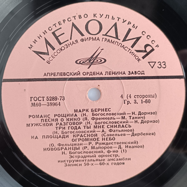 БЕРНЕС,МАРК - ЗАПИСИ 30-60х ГОДОВ (2LP) Мелодия 1976